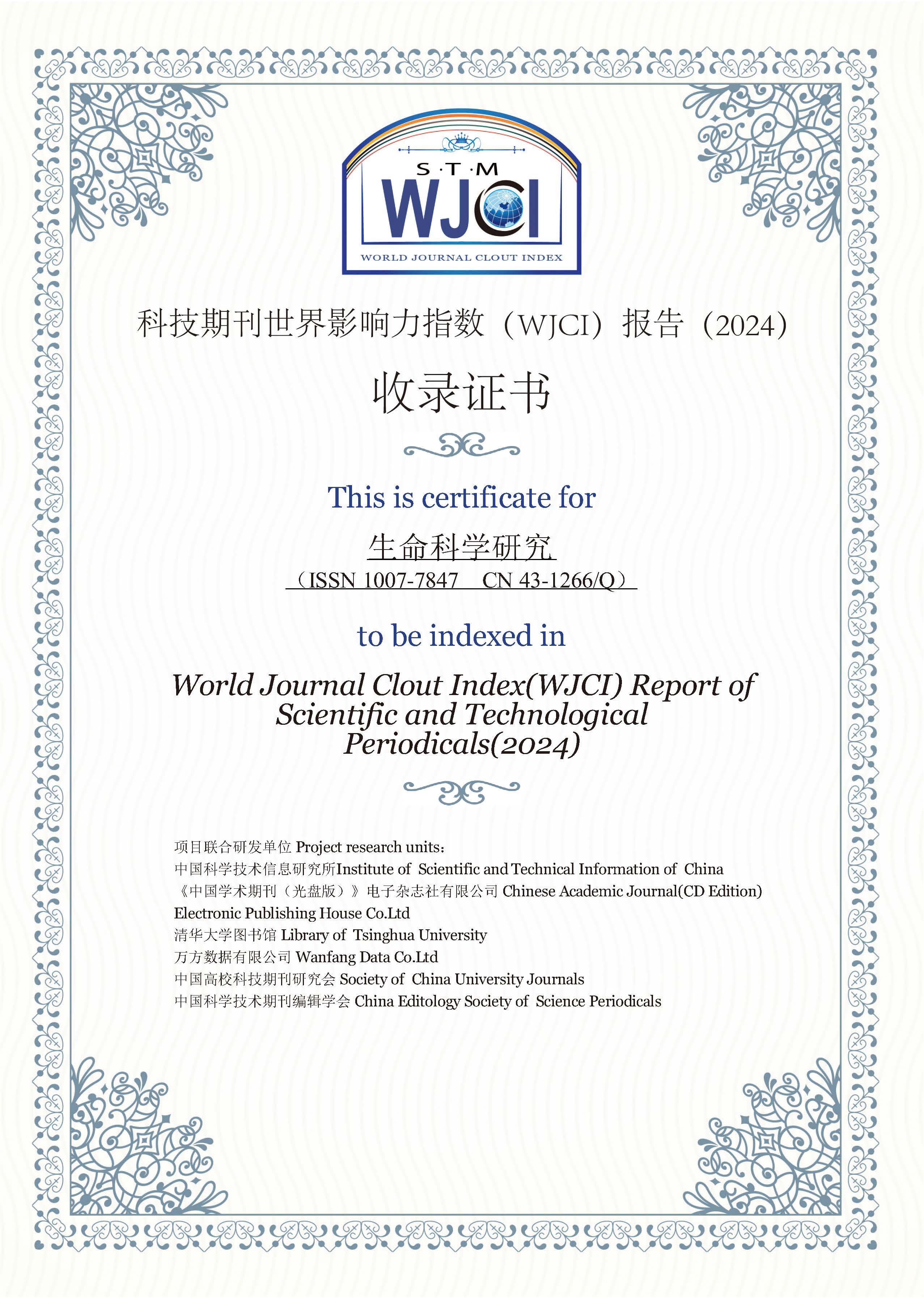 《生命科学研究》继续被WJCI收录